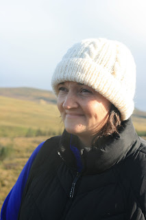 | Aran locally knitted pure wool hat, modelled by Shona. |